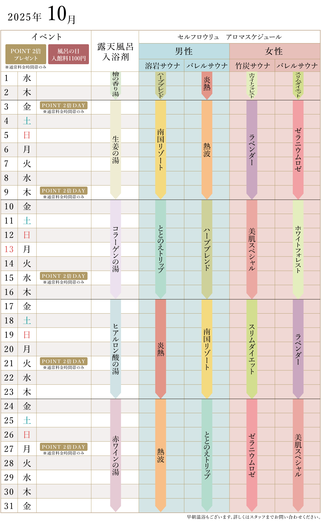 エステご利用の方には、時間外でも追加料金無しでお過ごしいただけます。